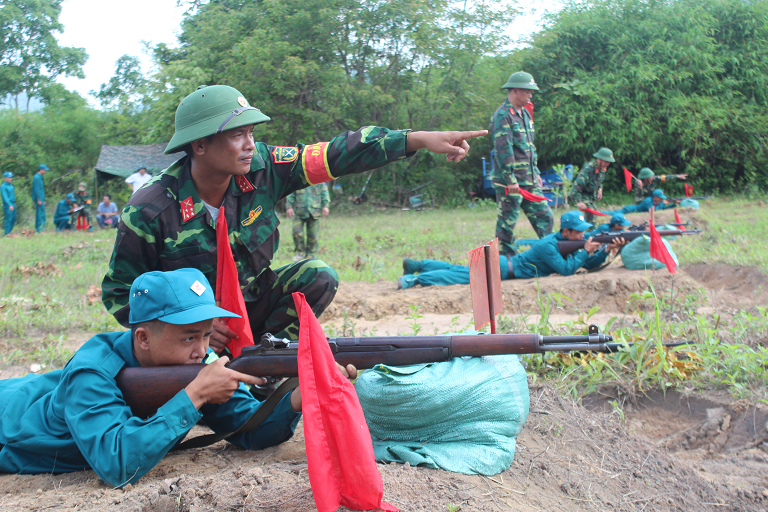 Ảnh: Cơ quan quân sự huyện Ea H’Leo kiểm tra bắn đạn thật năm 2019 cho dân quân xã Ea Hiao.