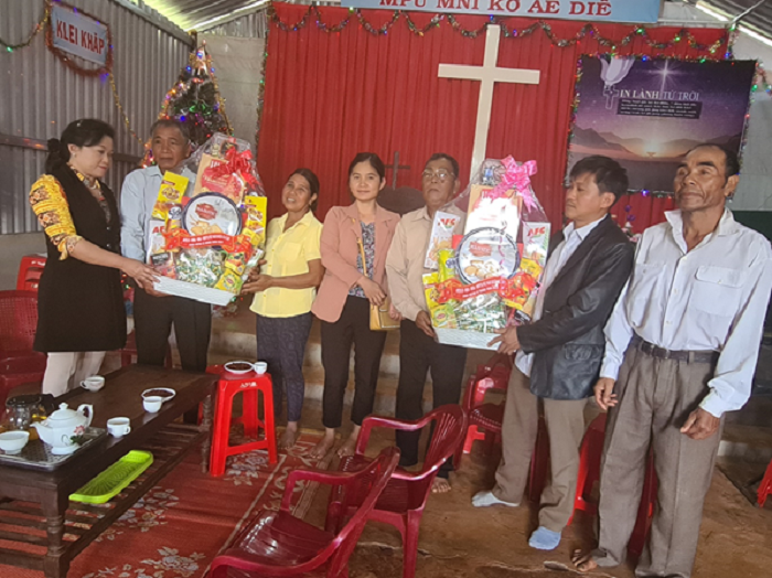 Tại các cơ sở tôn giáo, Thay mặt Huyện Uỷ, HĐND, UBND, UBMTTQVN huyện Ea H’Leo, bà Nguyễn Thị Xuân - Phó Trưởng Ban Dân vận Huyện ủy đã tặng quà và chúc mừng toàn thể các chức sắc và đồng bào tín hữu, giáo dân đón một mùa Giáng sinh an lành, hạnh phúc, tiếp tục đoàn kết, chung tay góp phần vào công cuộc phát triển kinh tế xã hội huyện nhà. Trong những năm qua các cấp ủy Đảng và chính quyền địa phương luôn quan tâm, tạo điều kiện cho các cơ sở tôn giáo, tín đồ, giáo dân được tự do tín ngưỡng theo quy định của pháp luật. Trong thời gian tới lãnh đạo huyện mong muốn các chức sắc tôn giáo tiếp tục vận động giáo dân, các tín hữu chấp hành tốt các chủ trương của Đảng, chính sách pháp luật nhà nước, giữ gìn an ninh trật tự, an toàn giao thông, đặc biệt là trong dịp Noel, trước, trong và sau Tết Cổ truyền của dân tộc.