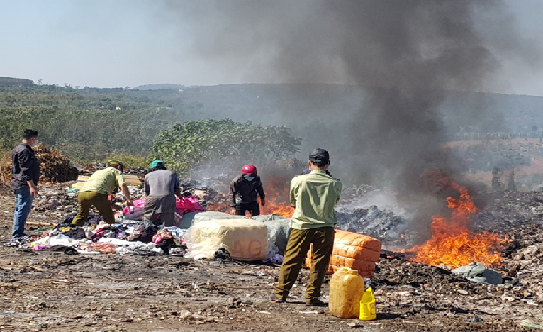 Ảnh: Tiêu huỷ tại bãi rác thị trấn Ea Drăng.