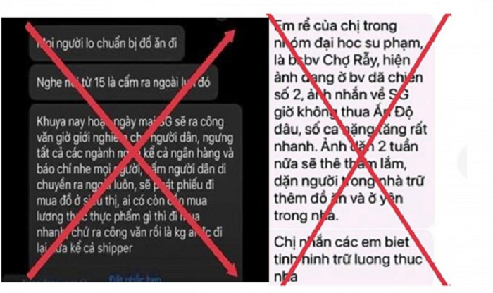 Điển hình như những tin giả: “Từ 0h ngày 15/7, TP.HCM sẽ giới nghiêm người dân, ngưng tất cả các ngành nghề, cấm người dân di chuyển ra ngoài”, “lãnh đạo TP.HCM đã nhiễm Covid-19”, hay bức ảnh nhiều thi thể nạn nhân trong bệnh viện, được chụp ở Indonesia thì lại bị các đối tượng gán là “chụp ở bệnh viện Chợ Rẫy, TP.HCM”... Những thông tin này không chỉ gây hoang mang dư luận, mà còn khiến cho công cuộc phòng chống đại dịch của Việt Nam bị ảnh hưởng xấu.