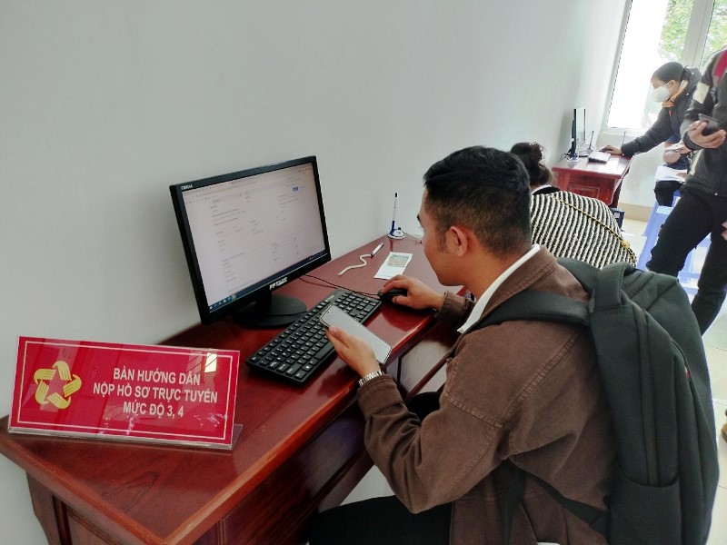 Người dân nộp hồ sơ trực tuyến tại Trung tâm phục vụ hành chính công .