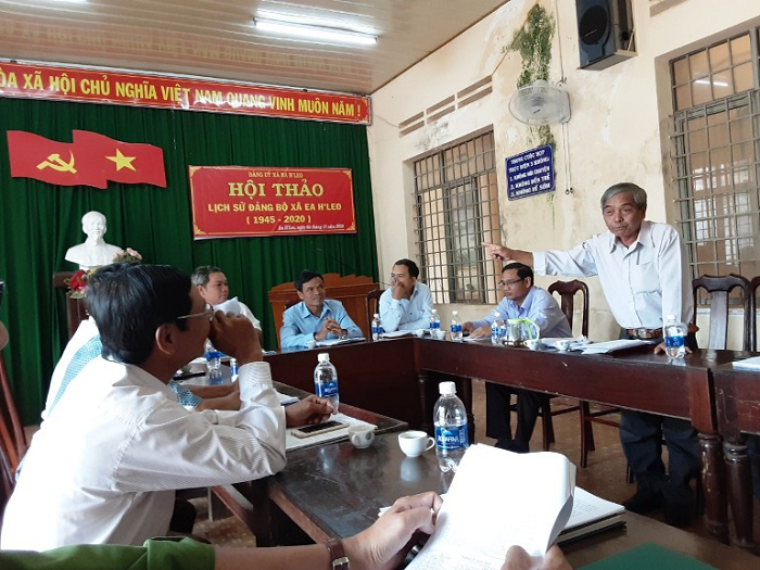 Chiều ngày 04/11/2020, tại Hội trường UBND xã Ea H’Leo, Đảng ủy xã Ea H’Leo tổ chức Hội thảo lịch sử Đảng bộ xã Ea H’Leo giai đoạn 1945 – 2020. Tham dự Hội thảo có đồng chí Lương Thế Thuận- HUV, Phó Trưởng Ban Tuyên giáo Huyện ủy; đồng chí Adrơng Y Khuyên - Bí thư Đảng ủy, Chủ tịch HĐND xã; cùng sự có mặt của các đồng chí nguyên lãnh đạo xã qua các thời kỳ, các đồng chí Ủy viên Ban Chấp hành Đảng bộ xã khóa XI, các đồng chí trong Ban chỉ đạo, Ban biên soạn cuốn lịch sử Đảng bộ xã Ea H’Leo giai đoạn 1945 – 2020.