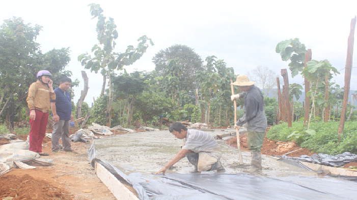 Nhân dân xã Ea Wy, huyện Ea H'Leo đóng góp ngày công làm giao thông nông thôn.