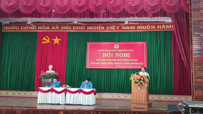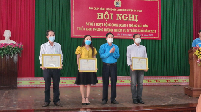 Ngày 13/7/2021, Liên đoàn Lao động (LĐLĐ) huyện Ea H’leo đã tổ chức Hội nghị Sơ kết hoạt động công đoàn 06 tháng đầu năm và triển khai phương hướng, nhiệm vụ trọng tâm 06 tháng cuối năm 2021, với sự tham dự của đại diện 99 Công đoàn cơ sở (CĐCS) trong toàn huyện.