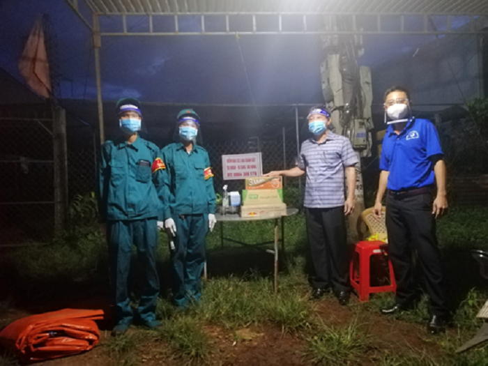 Ảnh: Tặng quà lực lượng đang làm nhiệm vụ tại các điểm chốt kiểm dịch Covid-19 trên địa bàn huyện Ea H’leo.