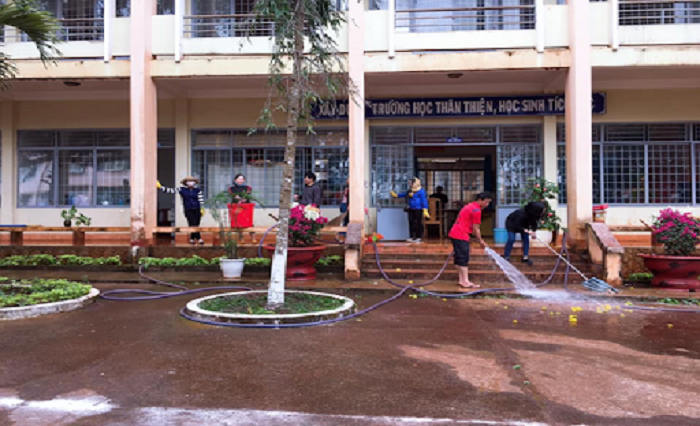 Thường xuyên dọn vệ sinh và sát khuẩn tại khuôn viên trường học và các địa điểm công cộng để phòng chống dịch bệnh bùng phát và lây lan
