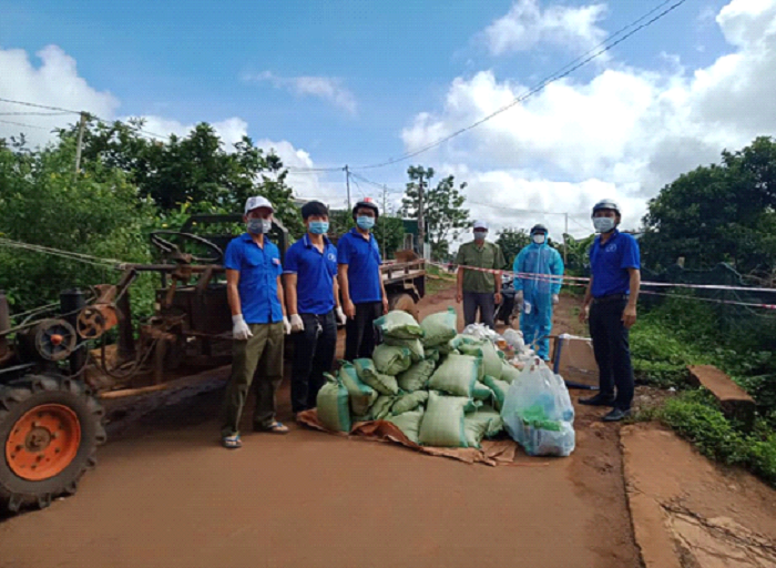 Bên cạnh đó, Huyện Đoàn cũng đã tặng các chốt kiểm soát ra, vào buôn 20 bộ quần áo bảo hộ, 29 kính chắn giọt bắn, nước xúc miệng…