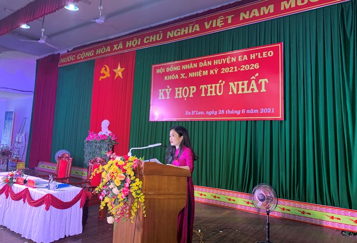 Sáng ngày 28/6/2021, Hội đồng nhân dân (HĐND) huyện Ea H’leo Khóa X, nhiệm kỳ 2021-2026 tổ chức kỳ họp thứ nhất để xem xét, quyết định các vấn đề thuộc thẩm quyền; bầu các chức danh chủ chốt HĐND, UBND, Hội thẩm Tòa án nhân dân huyện nhiệm kỳ 2021-2026 theo quy định của pháp luật.