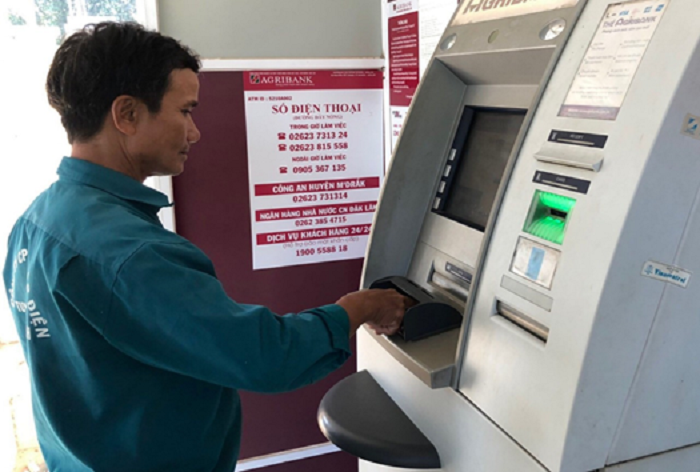 Ảnh: Khách hàng giao dịch tại ATM của Agribank huyện Ea H’Leo.