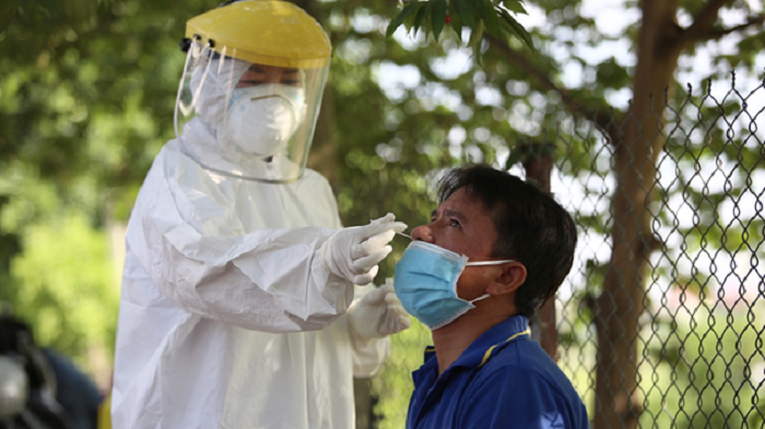 Ảnh: Ngành y tế tiến hành lấy mẫu test nhanh kháng nguyên