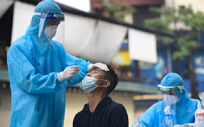 Ảnh: Ngành y tế tiến hành lấy mẫu test nhanh kháng nguyên