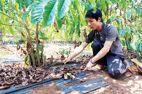 Ảnh: Mô hình tưới nhỏ giọt kết hợp làm màng phủ nylon cho vườn cà phê