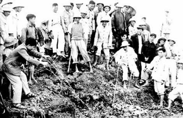 Ảnh: Bác hồ tát nước với nông dân - Ảnh tư liệu