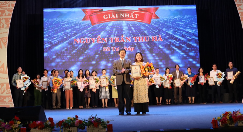 Ban Tổ chức trao giải Nhất cho thí sinh Nguyễn Trần Thu Hà- Sở Tư Pháp