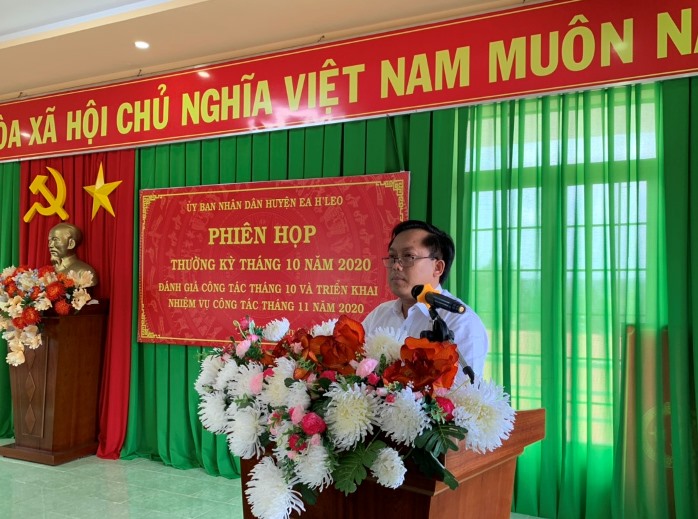 Sáng ngày 04/11/2020, UBND huyện tổ chức Phiên họp thường kỳ tháng 10 để đánh giá kết quả thực hiện nhiệm vụ phát triển kinh tế - xã hội, đảm bảo quốc phòng – an ninh tháng 10 và triển khai nhiệm vụ trọng tâm tháng 11 năm 2020. Về dự Phiên họp có: Ông Bun Thó Lào - TUV, Bí thư Huyện ủy; bà Bùi Thị Hà Giang – UVBTV, Phó Chủ tịch HĐND huyện; ông Y Thắng – Êban - Phó Chủ tịch UBND huyện, chủ trì phiên họp; các Ủy viên UBND huyện; lãnh đạo các cơ quan, ban, ngành có liên quan.